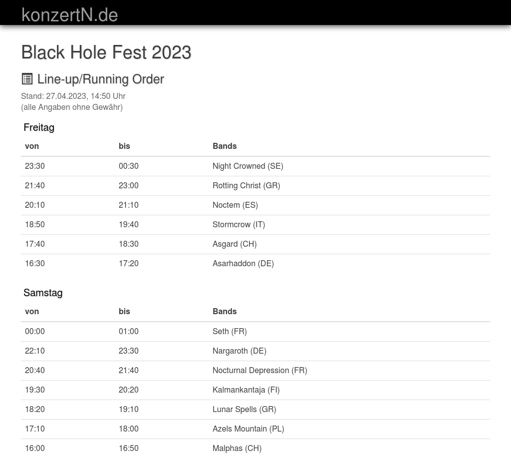| 16:30 | 17:20 | Asarhaddon (DE) |