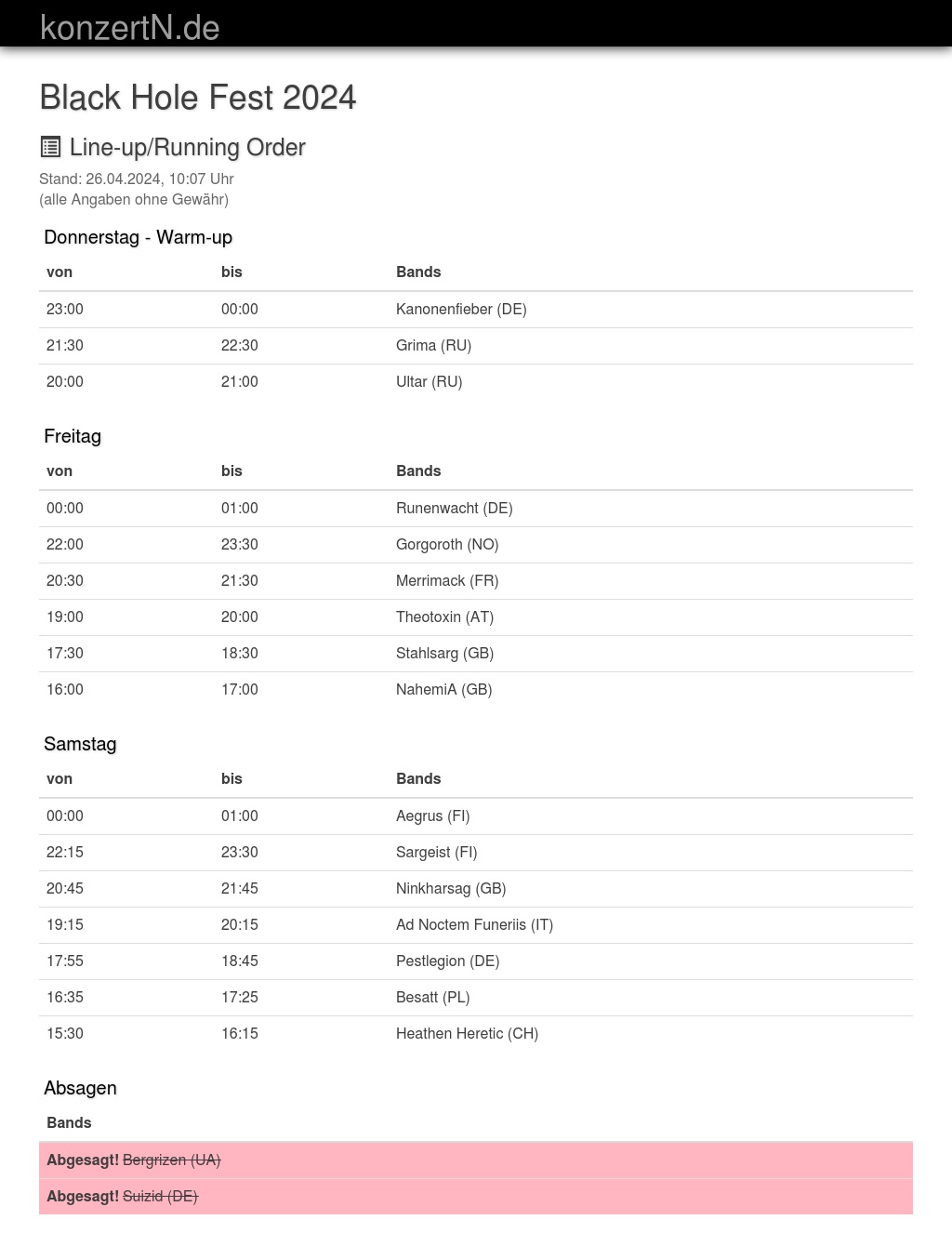 | 17:55 | 18:45 | Pestlegion (DE) | |