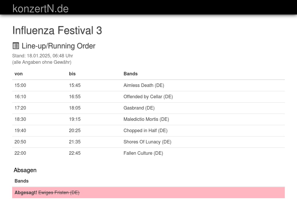 | 15:00 | 15:45 | Aimless Death (DE) | |