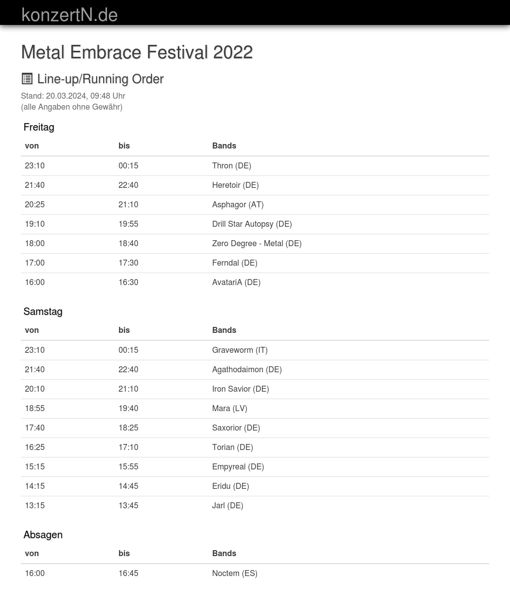 | 20:10 | 21:10 | Iron Savior (DE) | |