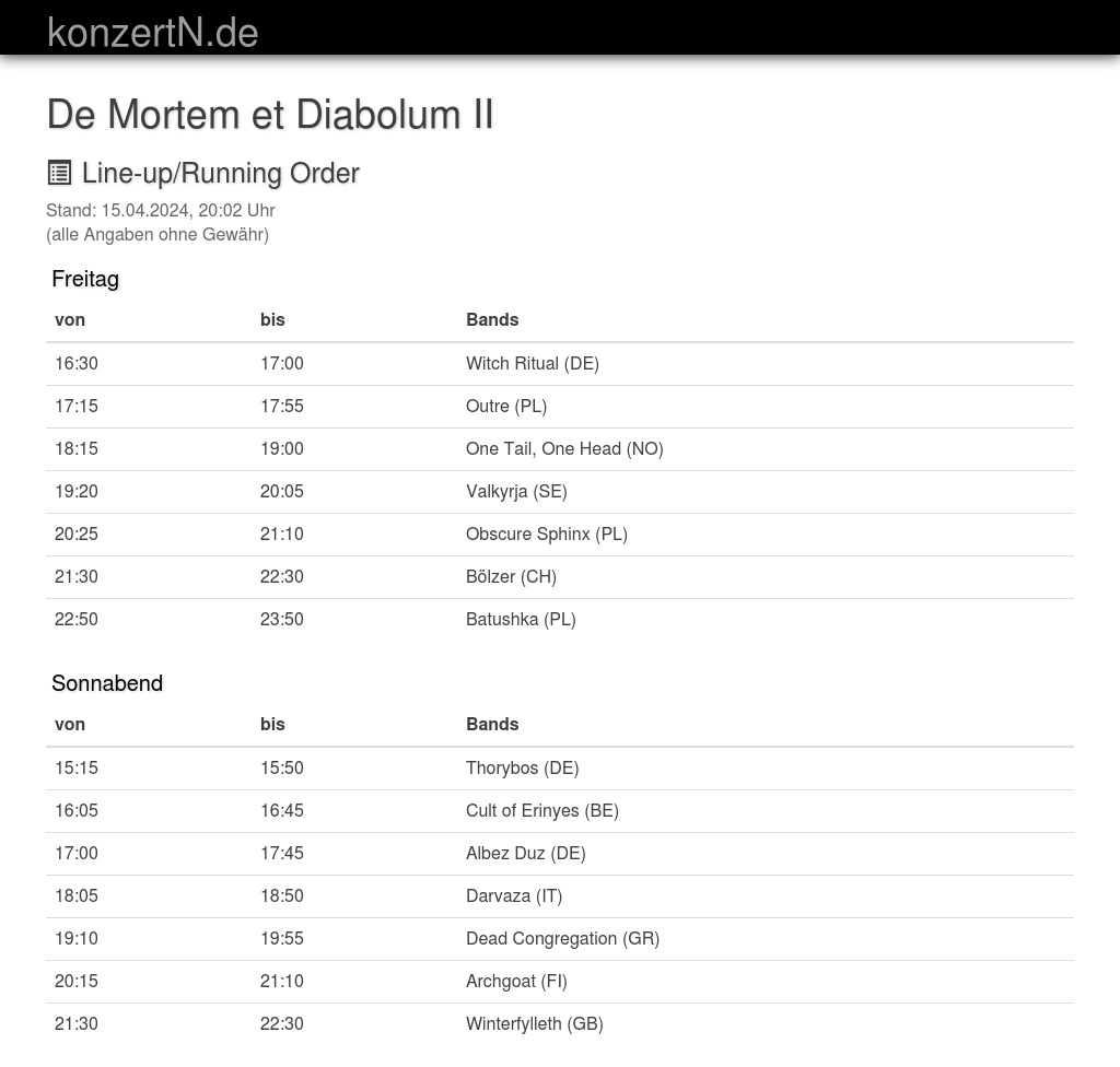 | 20:15 | 21:10 | Archgoat (FI) | |