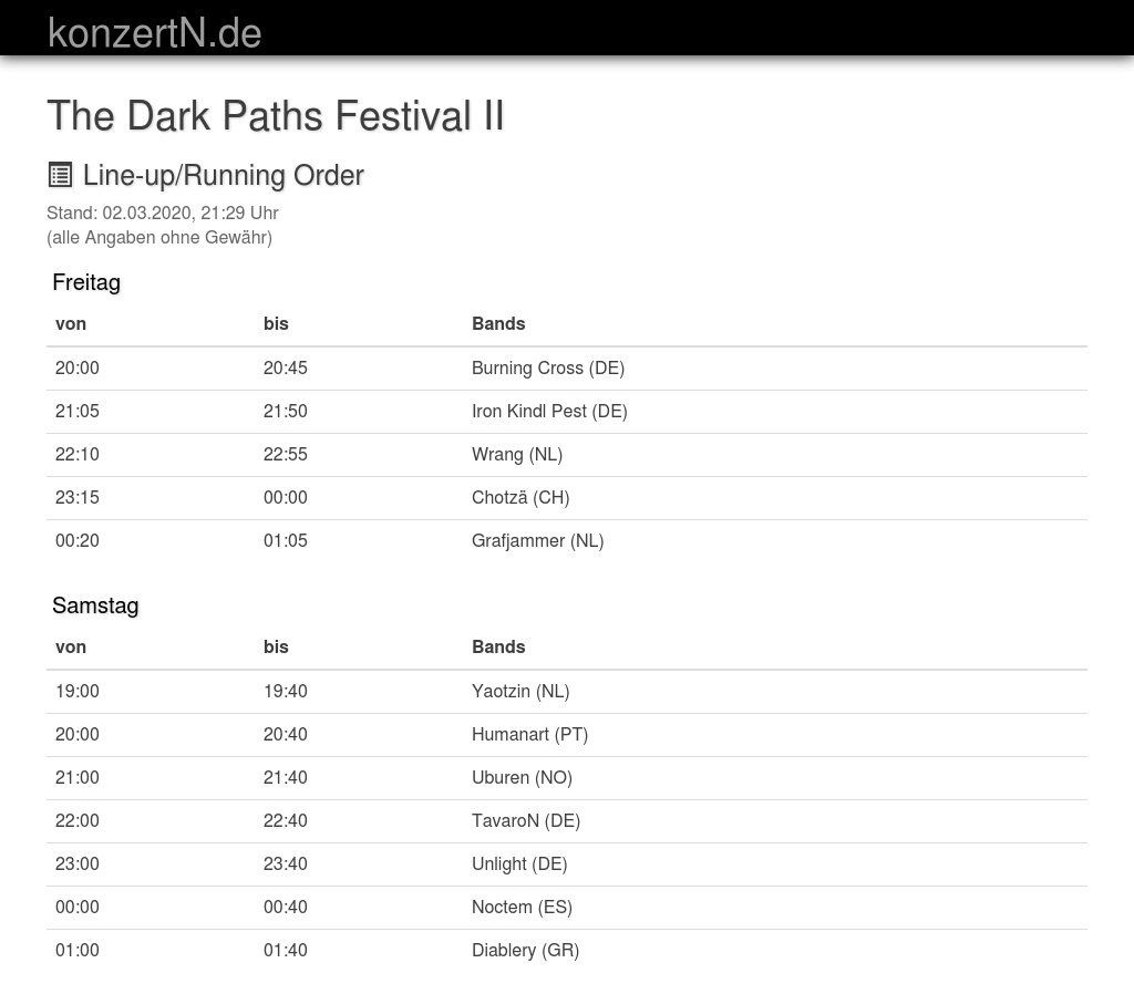 | 21:05 | 21:50 | Iron Kindl Pest (DE) | |