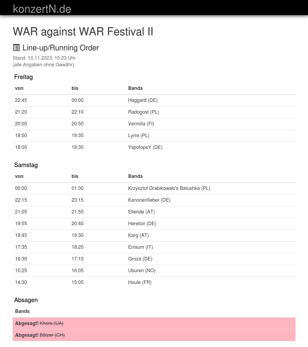 | 22:15 | 23:15 | Kanonenfieber (DE) | |