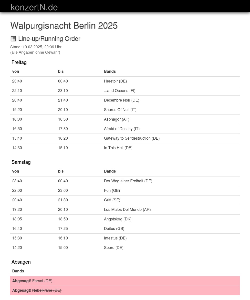 | 15:30 | 16:10 | Infestus (DE) | |