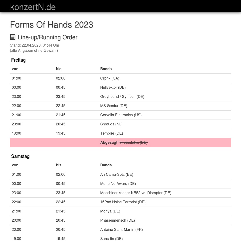 | 20:00 | 20:45 | Phasenmensch (DE) | |