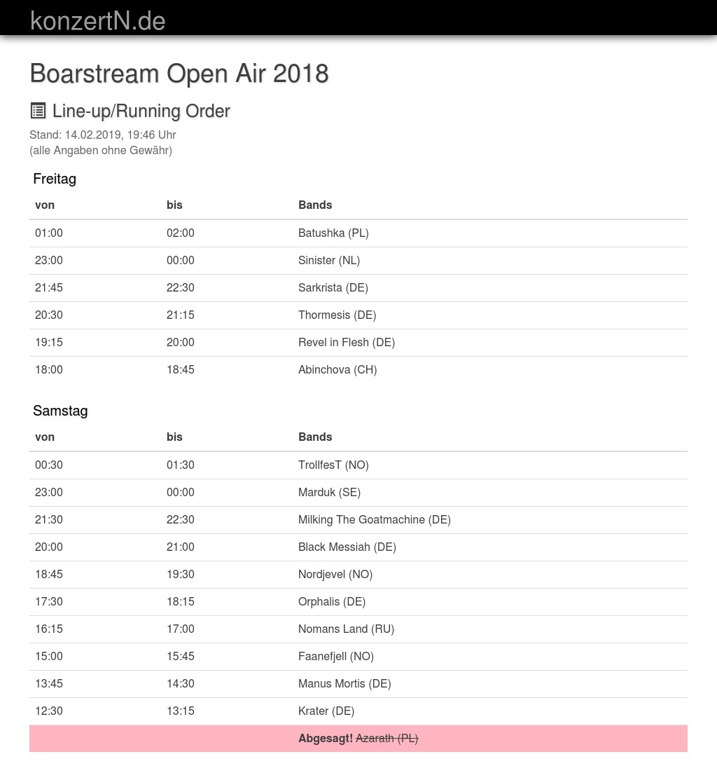 | 19:15 | 20:00 | Revel in Flesh (DE) | |