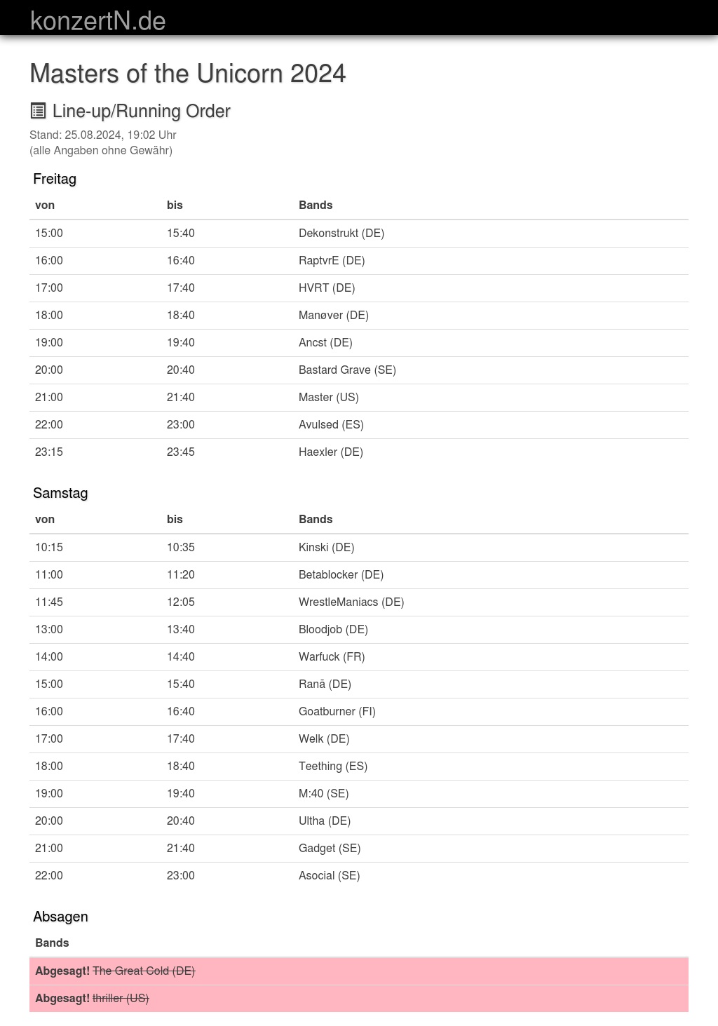 | 13:00 | 13:40 | Bloodjob (DE) | |