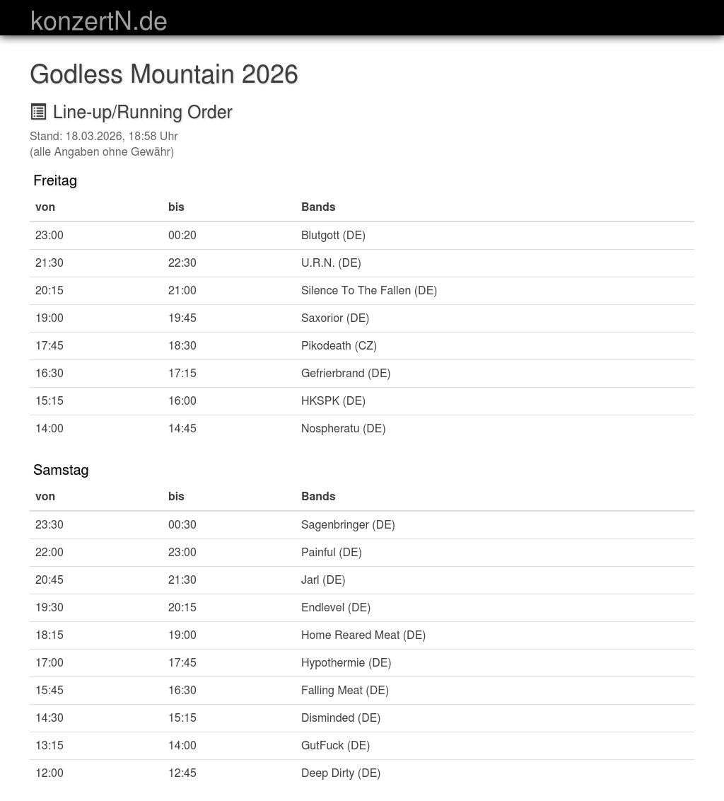 | 23:00 | 00:20 | Blutgott (DE) | |