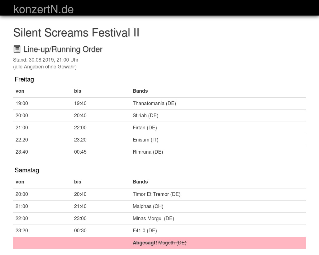 | 20:00 | 20:40 | Timor Et Tremor (DE) | |