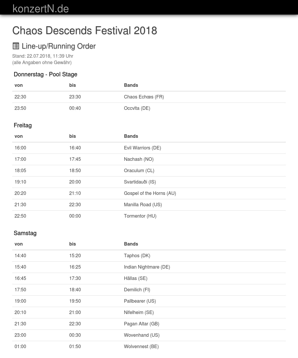 | 17:00 | 17:45 | Nachash (NO) | |