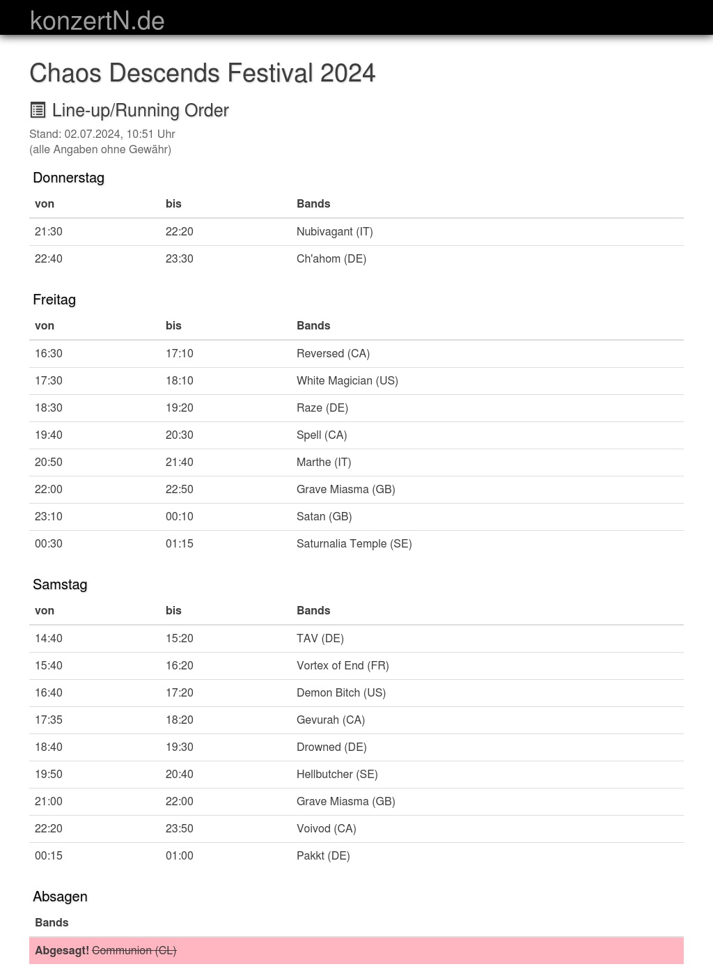 | 19:50 | 20:40 | Hellbutcher (SE) | |