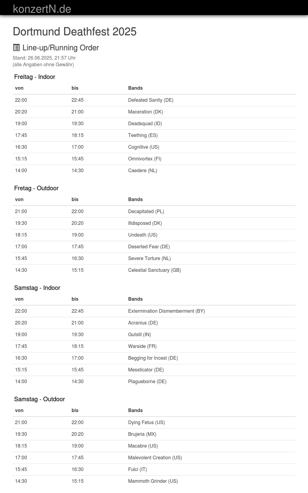 | 22:00 | 22:45 | Defeated Sanity (DE) | |