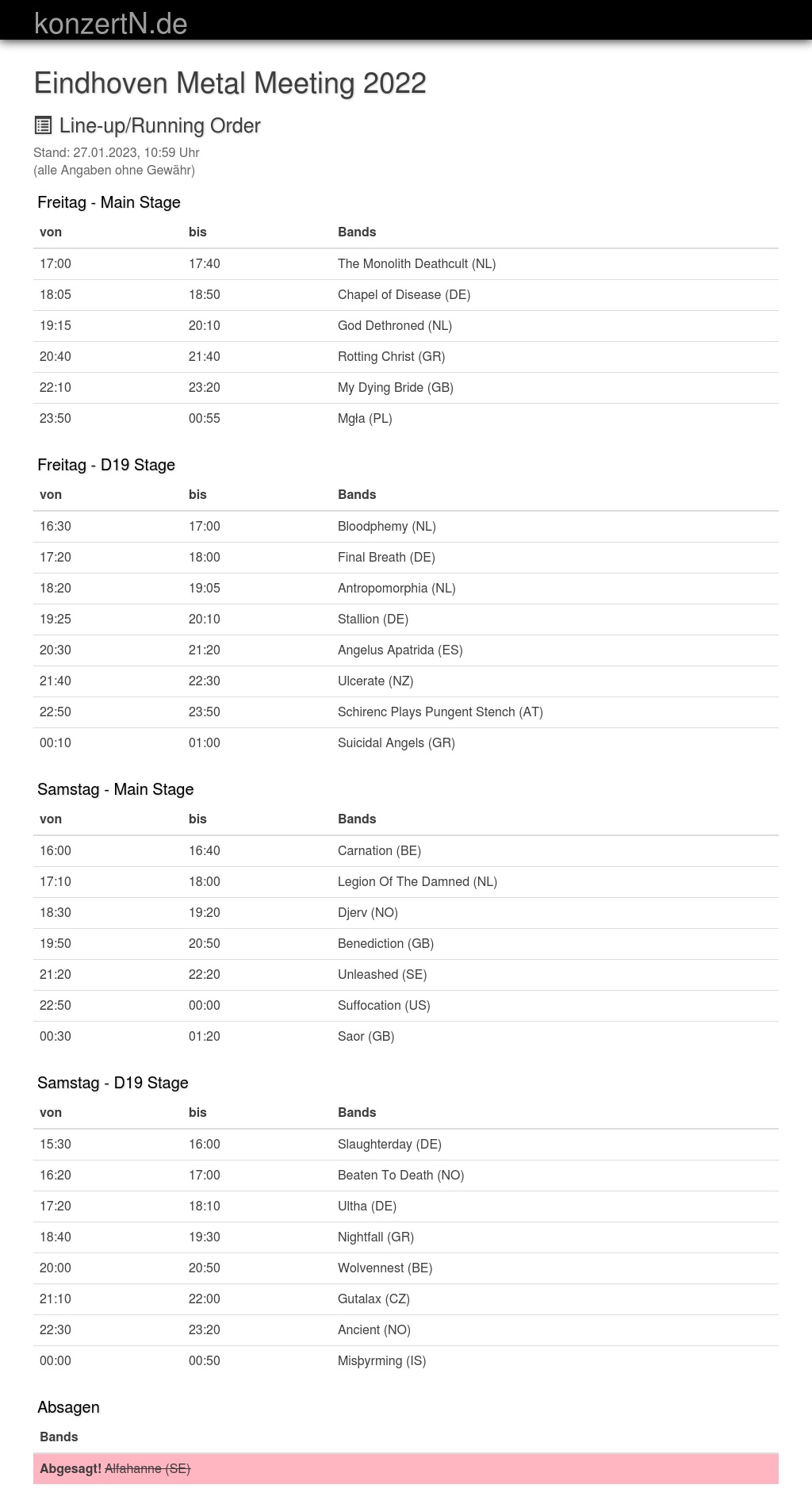 | 16:20 | 17:00 | Beaten To Death (NO) | |