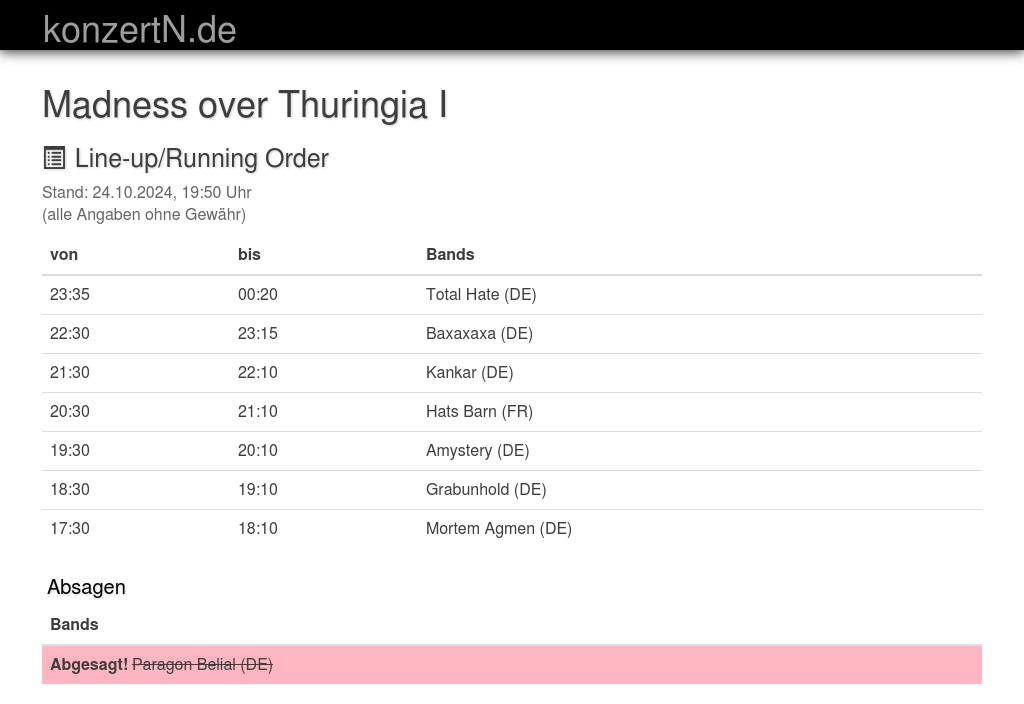 | 23:35 | 00:20 | Total Hate (DE) | |