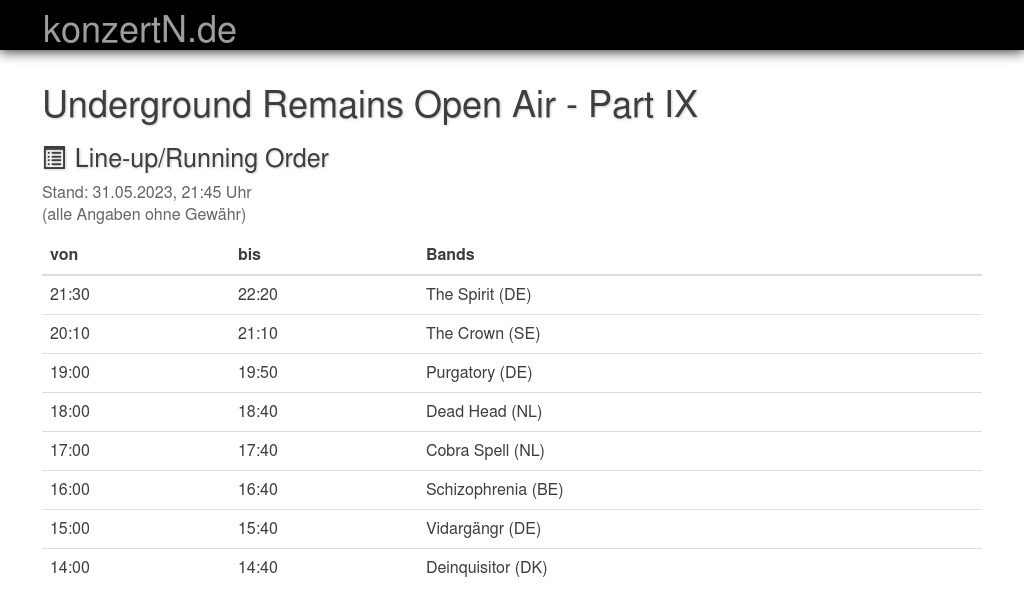 | 21:30 | 22:20 | The Spirit (DE) | |
