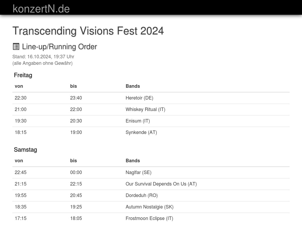 | 22:30 | 23:40 | Heretoir (DE) | |