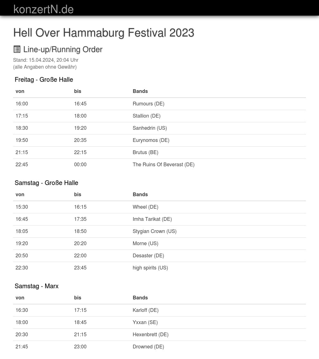 | 20:30 | 21:15 | Hexenbrett (DE) | |