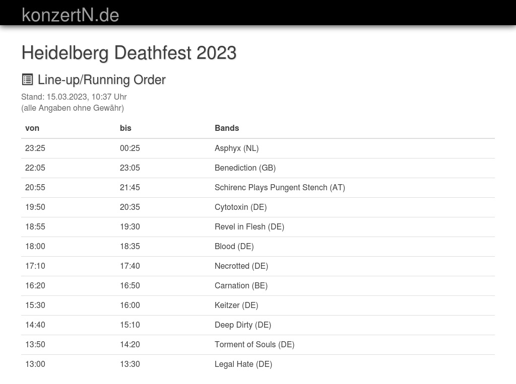| 19:50 | 20:35 | Cytotoxin (DE) | |