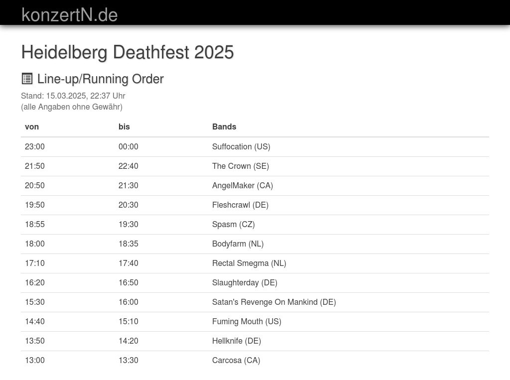 | 16:20 | 16:50 | Slaughterday (DE) | |