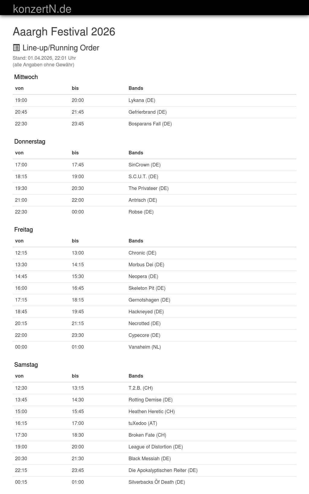 | 00:15 | 01:00 | Silverbacks Öf Death (DE) |