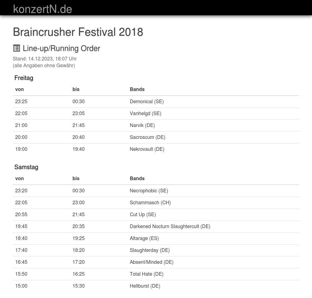 | 17:40 | 18:20 | Slaughterday (DE) | |
