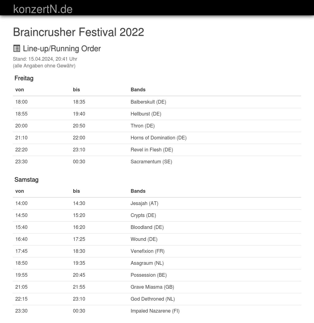 | 15:40 | 16:20 | Bloodland (DE) | |