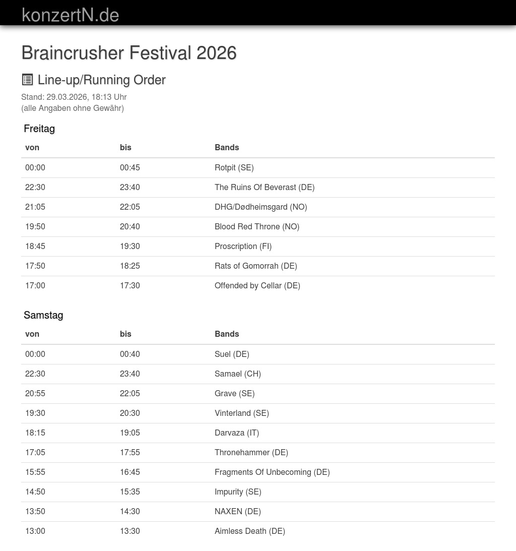 | 19:50 | 20:40 | Blood Red Throne (NO) | |