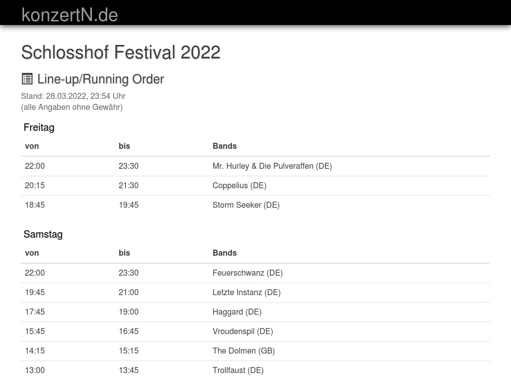 | 22:00 | 23:30 | Feuerschwanz (DE) | |