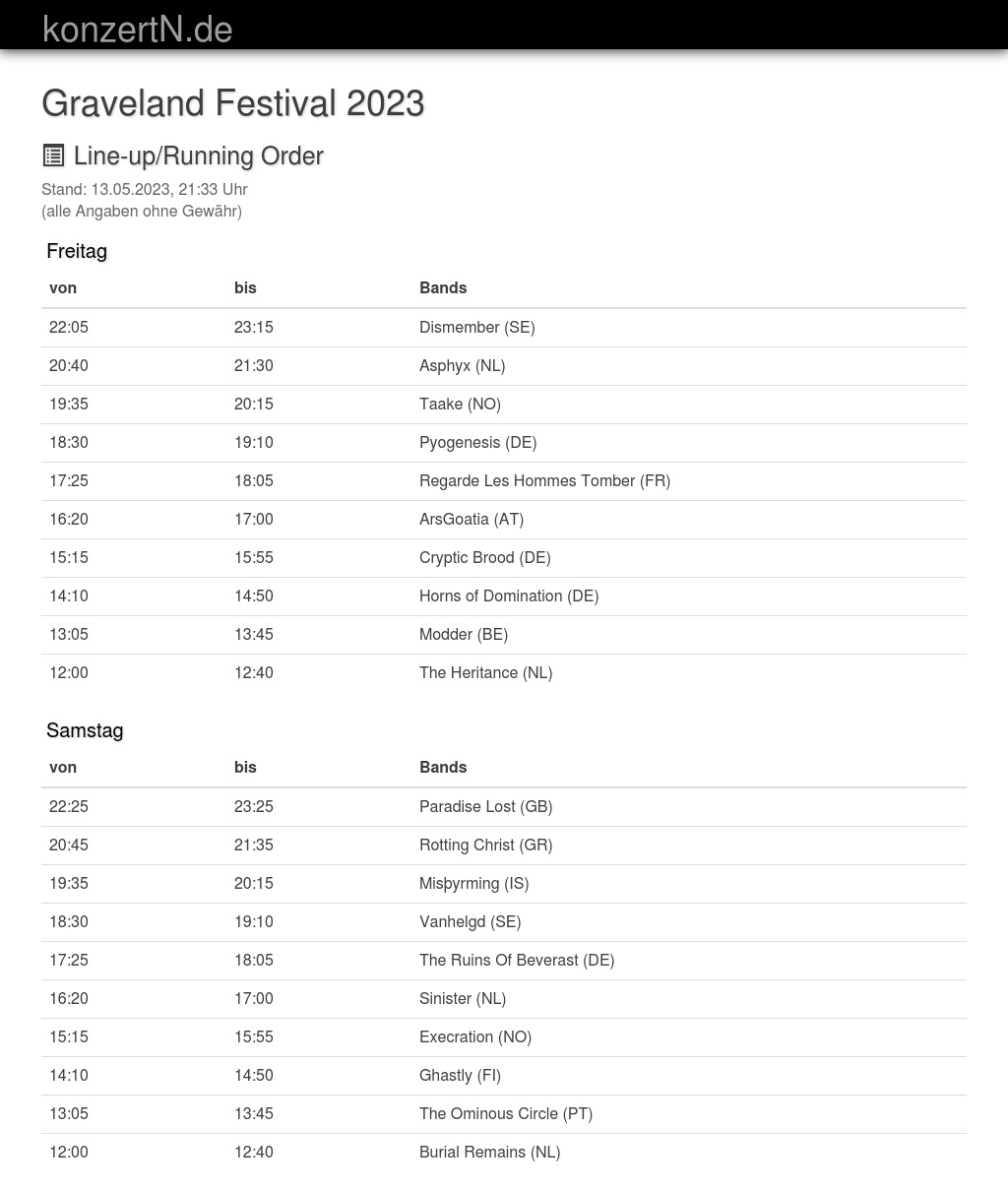 | 15:15 | 15:55 | Execration (NO) | |