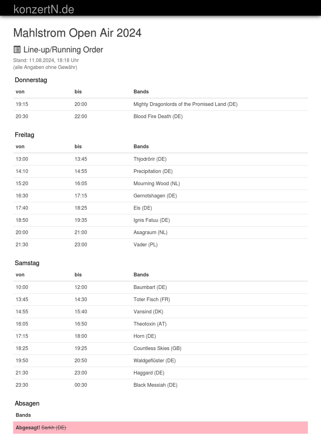 | 18:50 | 19:35 | Ignis Fatuu (DE) | |