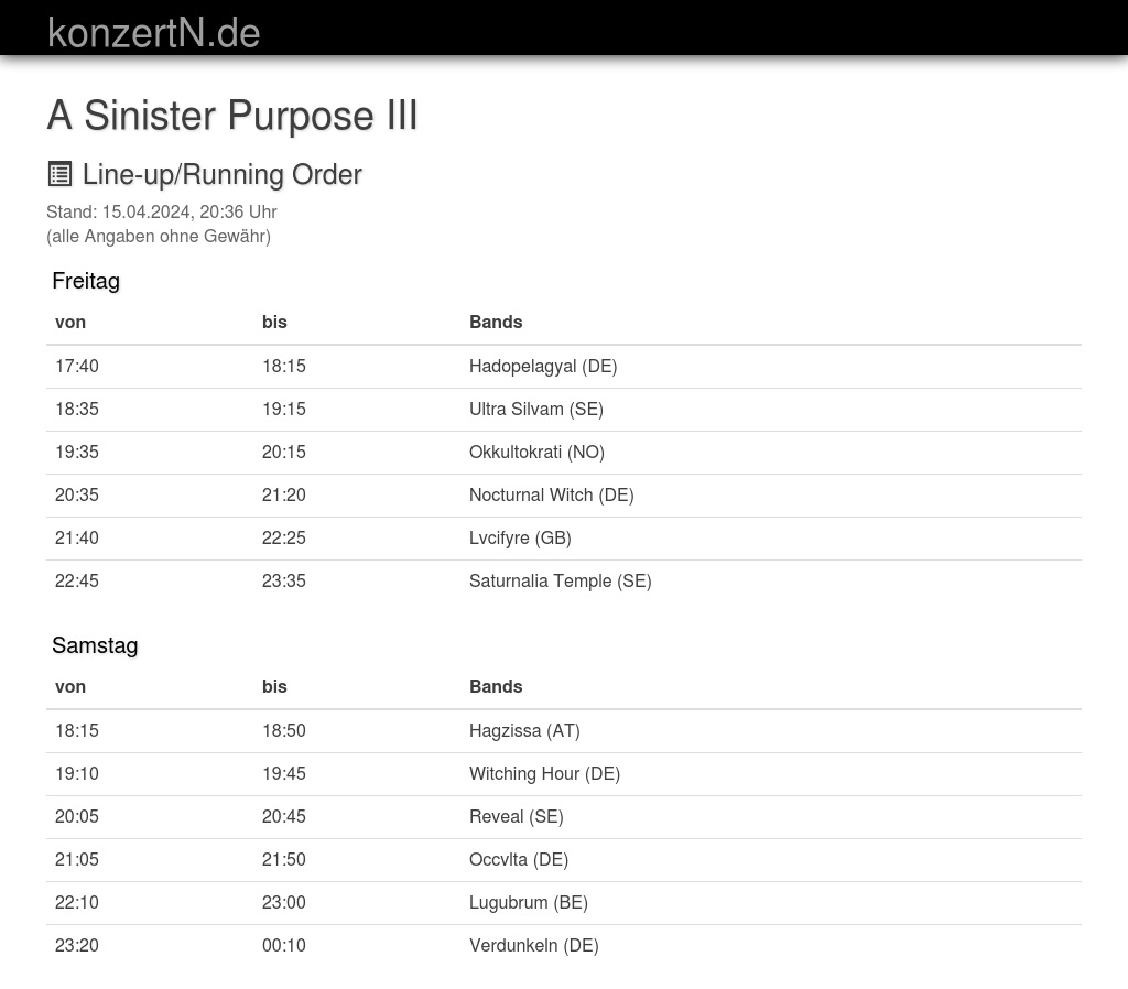 | 20:35 | 21:20 | Nocturnal Witch (DE) | |