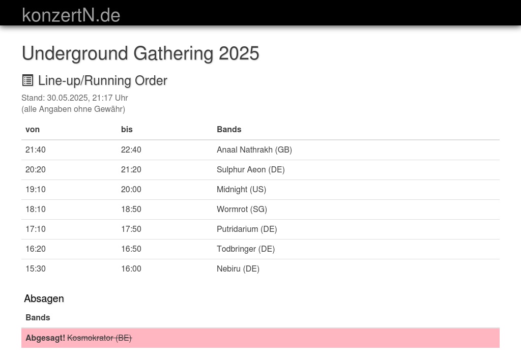 | 16:20 | 16:50 | Todbringer (DE) | |