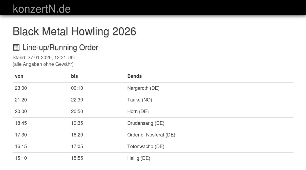 | 23:00 | 00:10 | Nargaroth (DE) | |