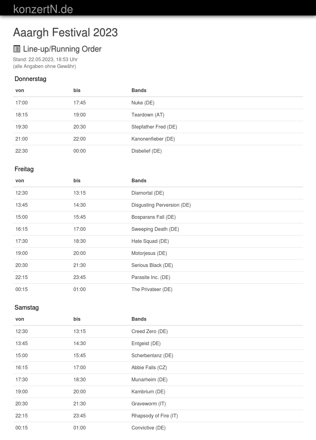 | 22:30 | 00:00 | Disbelief (DE) |