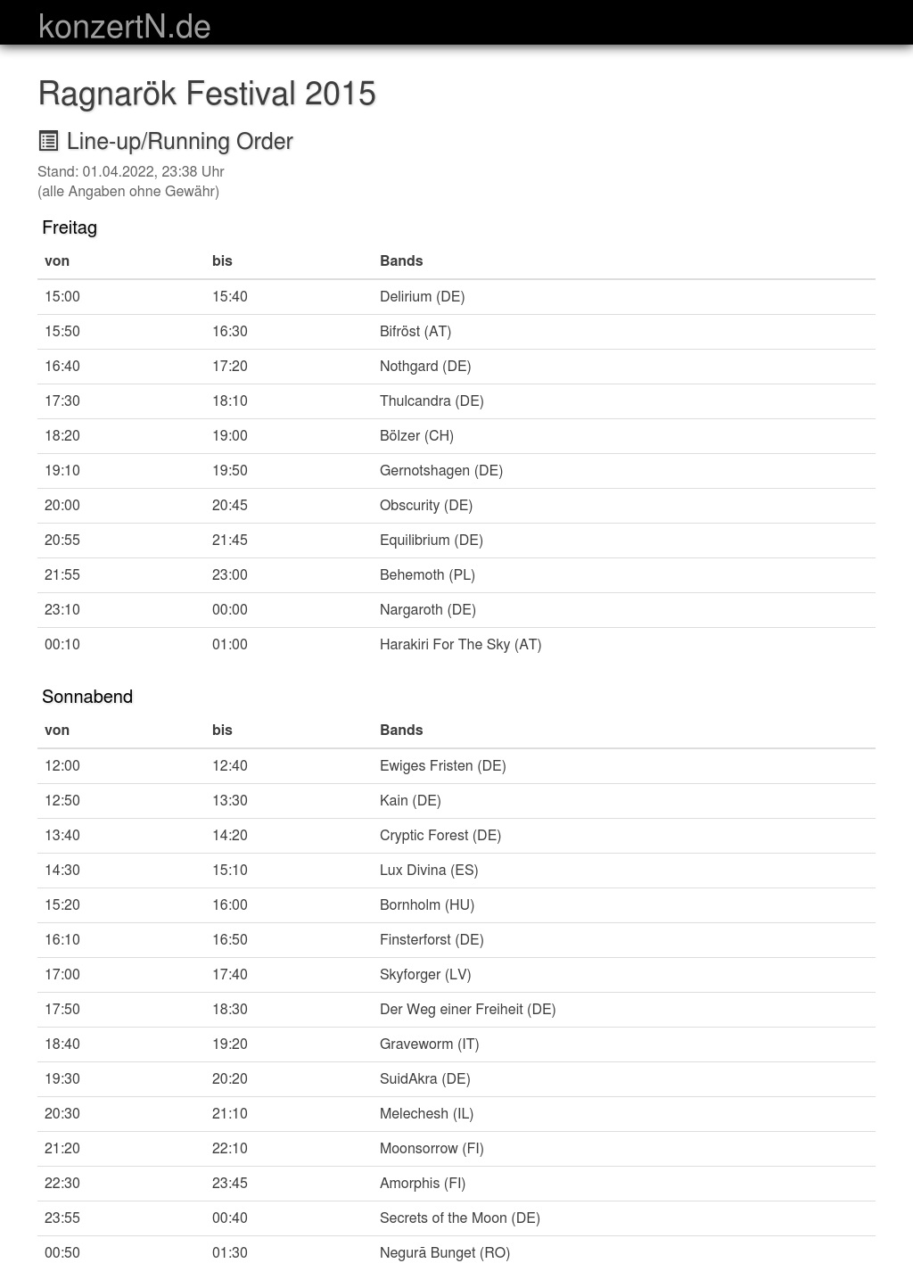 | 23:10 | 00:00 | Nargaroth (DE) | |