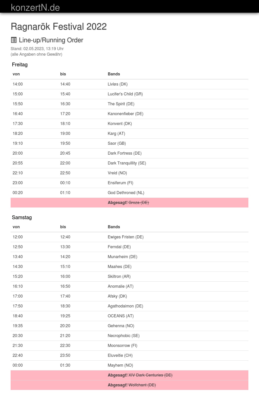 | 20:00 | 20:45 | Dark Fortress (DE) | |