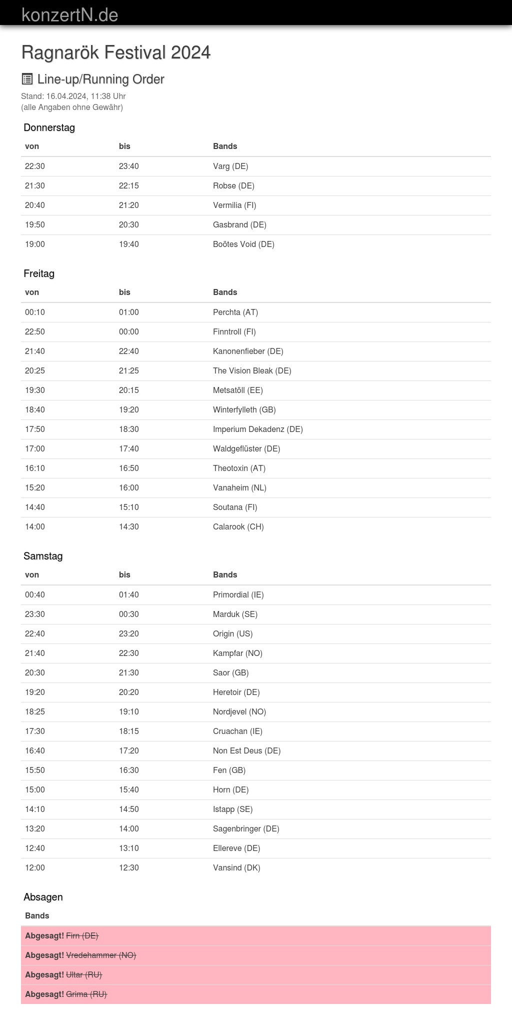 | 17:50 | 18:30 | Imperium Dekadenz (DE) | |