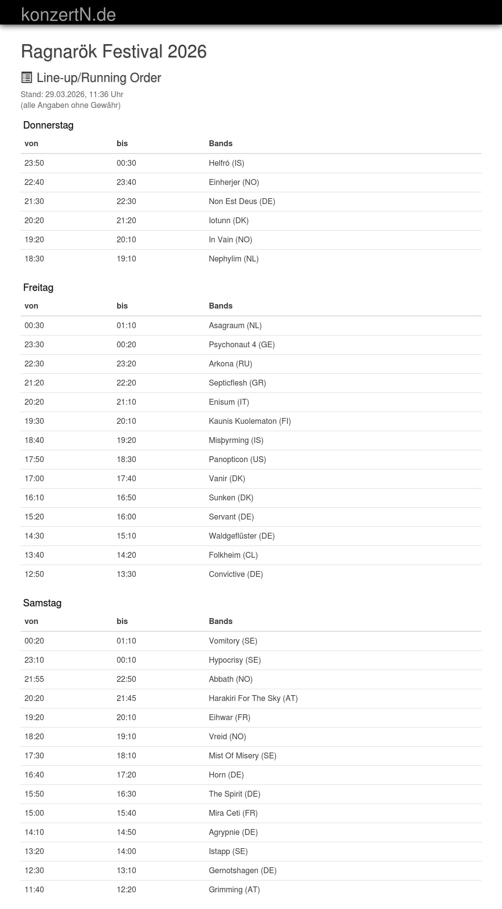 | 22:40 | 23:40 | Einherjer (NO) | |