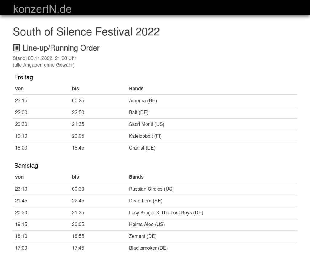| 18:10 | 18:55 | Zement (DE) | |