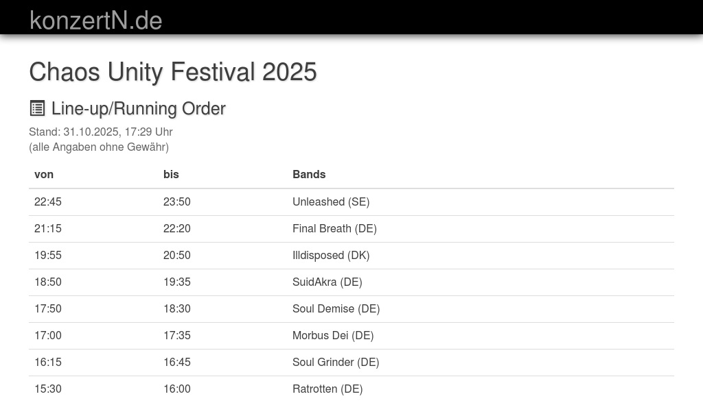 | 18:50 | 19:35 | SuidAkra (DE) | |