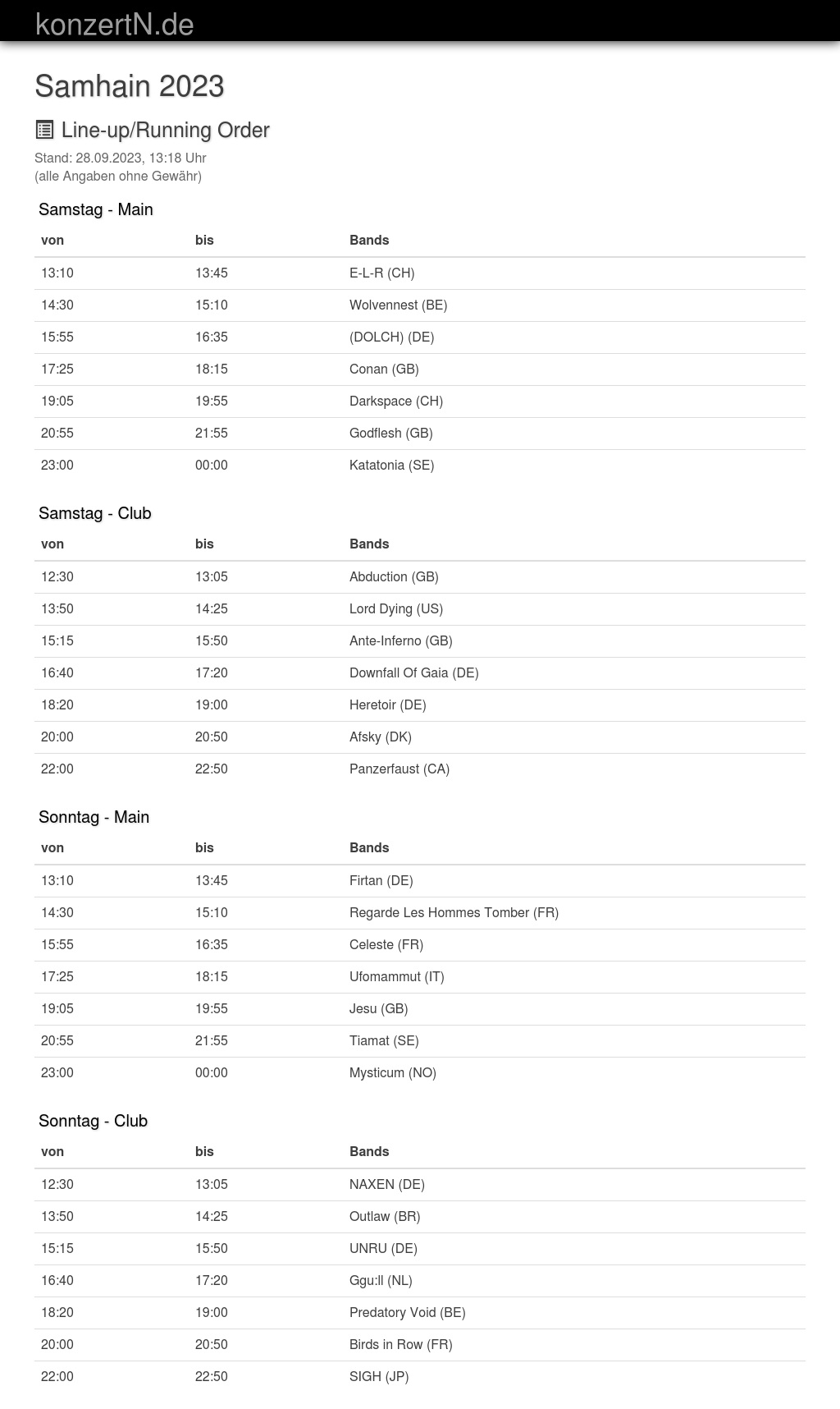 | 19:05 | 19:55 | Darkspace (CH) | |