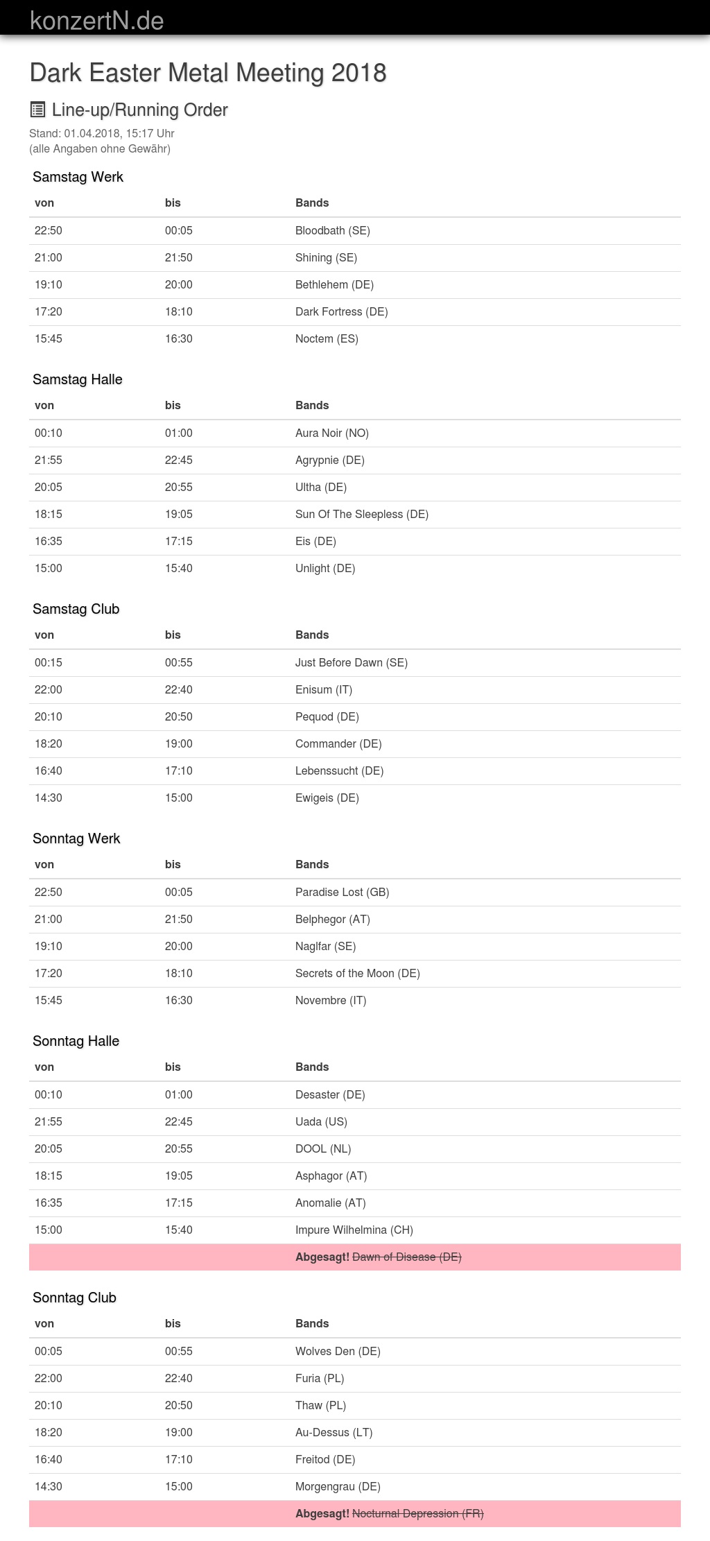 | 17:20 | 18:10 | Dark Fortress (DE) | |