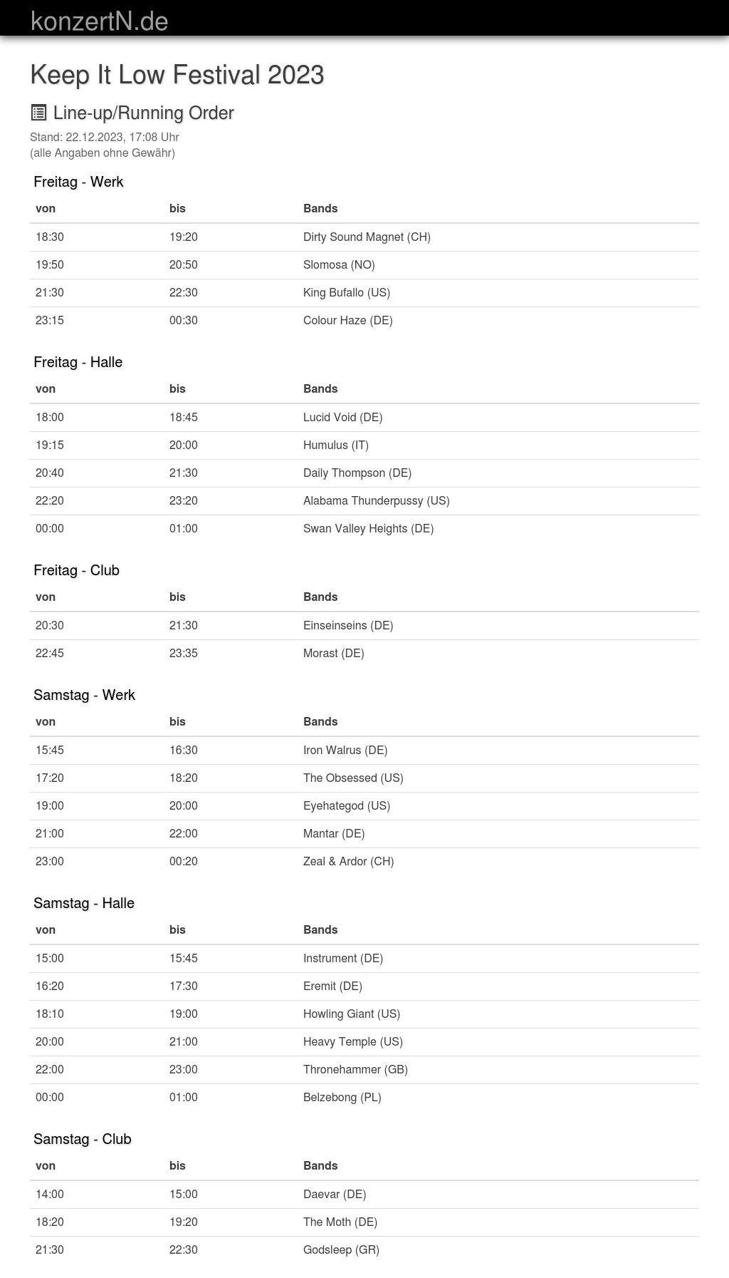| 22:00 | 23:00 | Thronehammer (DE) | |