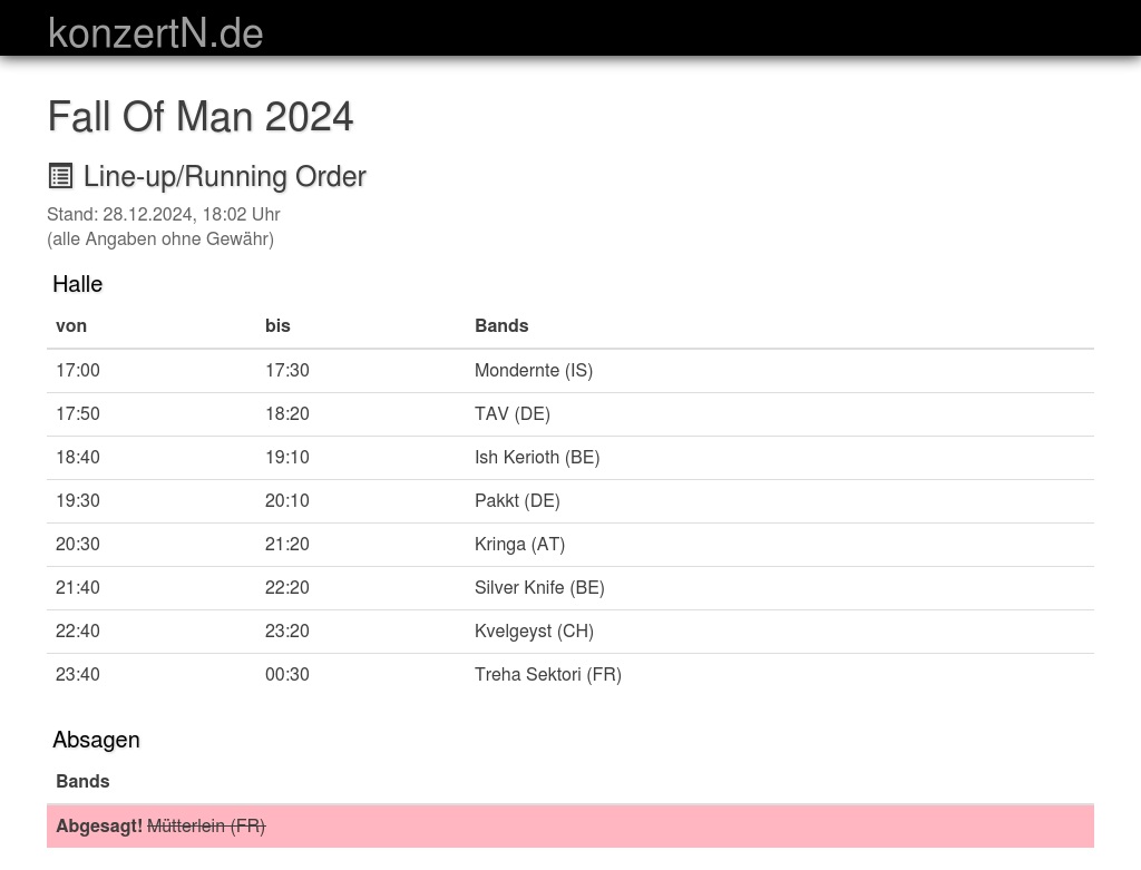 | 22:40 | 23:20 | Kvelgeyst (CH) | |