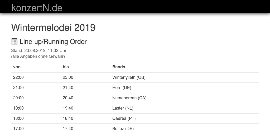 | 21:00 | 21:40 | Horn (DE) | |