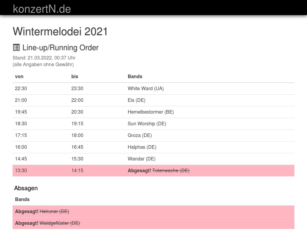 | 13:30 | 14:15 | Abgesagt! Totenwache (DE) |