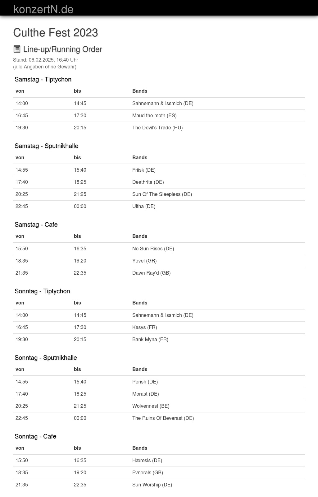 | 20:25 | 21:25 | Sun Of The Sleepless (DE) | |