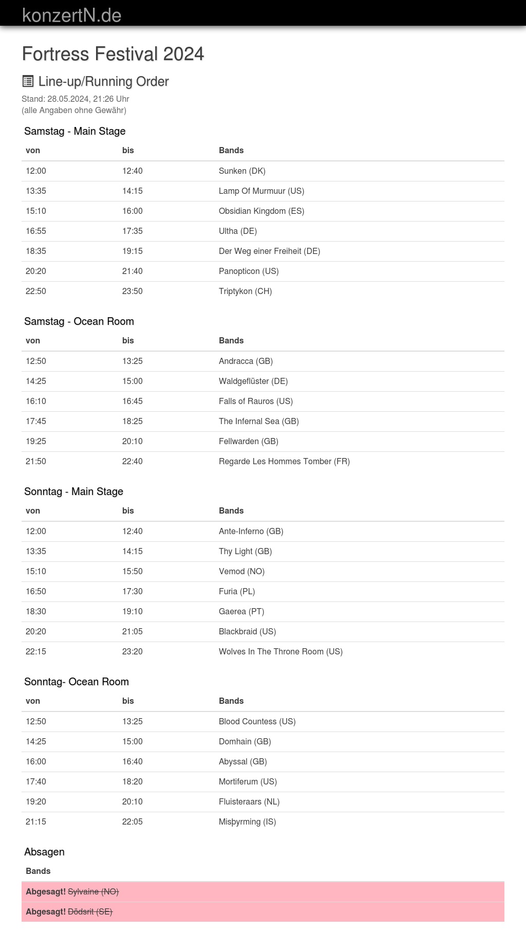| 12:00 | 12:40 | Sunken (DK) | |