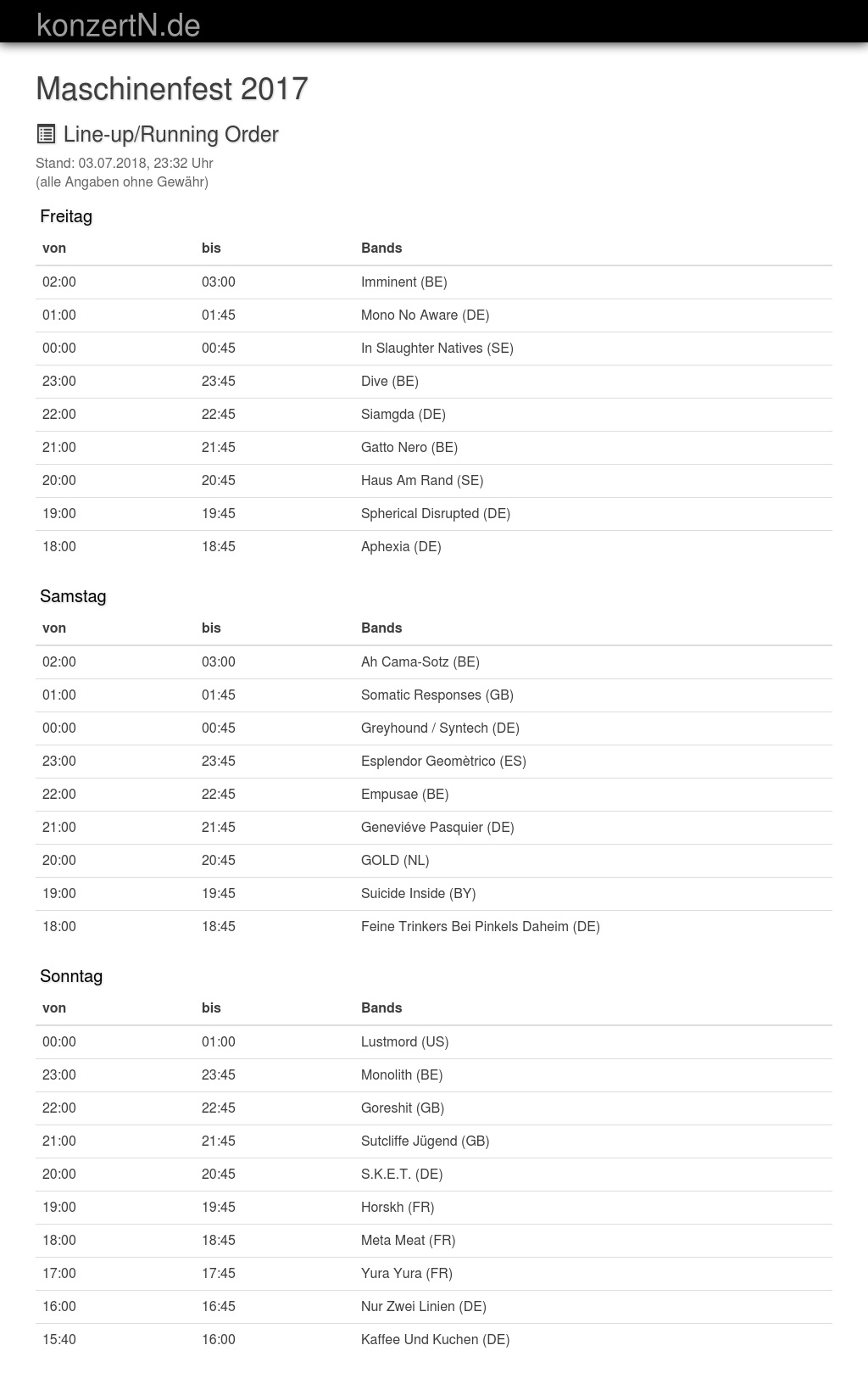 | 16:00 | 16:45 | Nur Zwei Linien (DE) | |