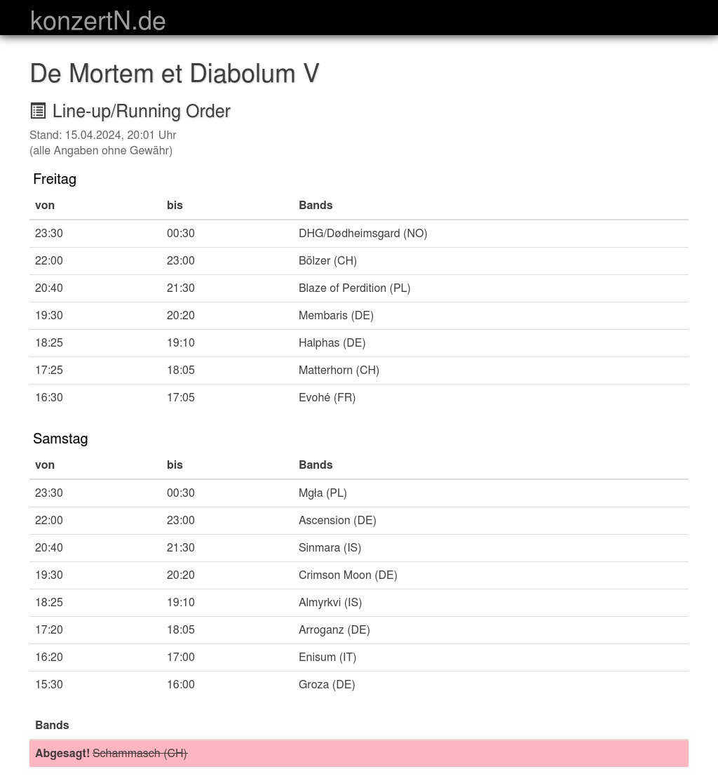 | 17:20 | 18:05 | Arroganz (DE) | |